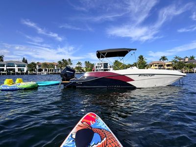 23' Starcraft Deckboat Includes 12 bottles of water and 2 bags of ice for your Boat Charter with licensed Captain, perfect for a day of Fishing, Cruising, Snorkeling, Paddle Boarding, or enjoying a Sunset Tour in Fort Lauderdale Miami.